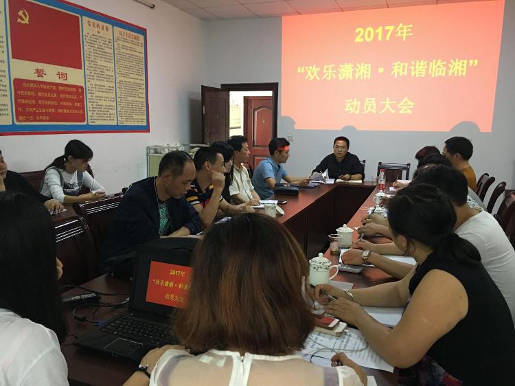 会上,传达了湖南省、岳阳市关于举办2017年“欢乐潇湘”大型群众文艺汇演活动的通知精神,市文化馆对2017年“欢乐潇湘•和谐临湘”活动的工作方案作了部署安排,会议强调今年的“欢乐潇湘”旨在丰富全市人民群众精神文化生活,喜迎党的十九大胜利召开,借此契机推进“文化强市”建设。活动将从5月持续到10月,共分宣传发动、乡镇(街道)初赛、复赛、决赛四个阶段推进,评选出优秀群众文艺节目,并遴选部分优秀节目参加“欢乐潇湘”全省群众文艺汇演总决赛。要求各镇(街道)综合文化站以戏曲和小品、地方名曲名段、本土特色名歌等节目形式作为本次活动的主要内容先组织初赛,再由全市统一组织文艺骨干打造出能够代表临湘地域特色、反映临湘新面貌的精品佳作。
