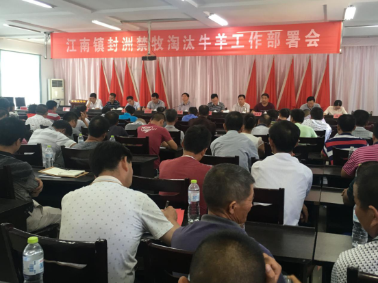 7月26日上午,江南镇召开封洲禁牧淘汰牛羊工作部署会,市血防办主任陈永清出席会议,全体党政领导、相关村全体村干部和生产组长、办点干部、相关站所参加了会议。