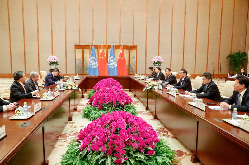 国务院总理李克强26日在钓鱼台国宾馆会见联合国秘书长古特雷斯。