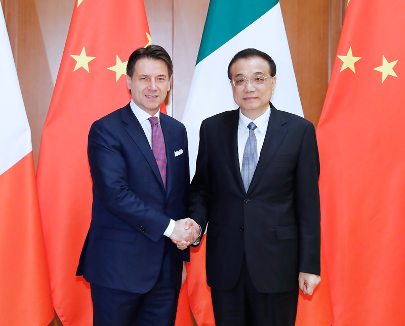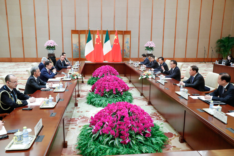 李克强表示,意大利是欧盟重要成员,也是中国的重要合作伙伴。上个月,习近平主席对意大利进行国事访问取得圆满成功。近年来,中意双方本着相互尊重、平等相待的原则开展合作,两国关系持续健康发展。中方愿同意方加强高层交往,将“一带一路”倡议同意大利发展战略相对接,深化基础设施、第三方市场、中小企业、科技创新、金融、航空等领域合作。欢迎意大利企业来华投资,希望双方为彼此企业提供公平竞争的环境。中方愿扩大进口意大利高质量农产品,深化与意方在应对气候变化等国际事务中的沟通与协调,希望意方继续为深化中欧关系与各领域对话合作发挥积极作用。