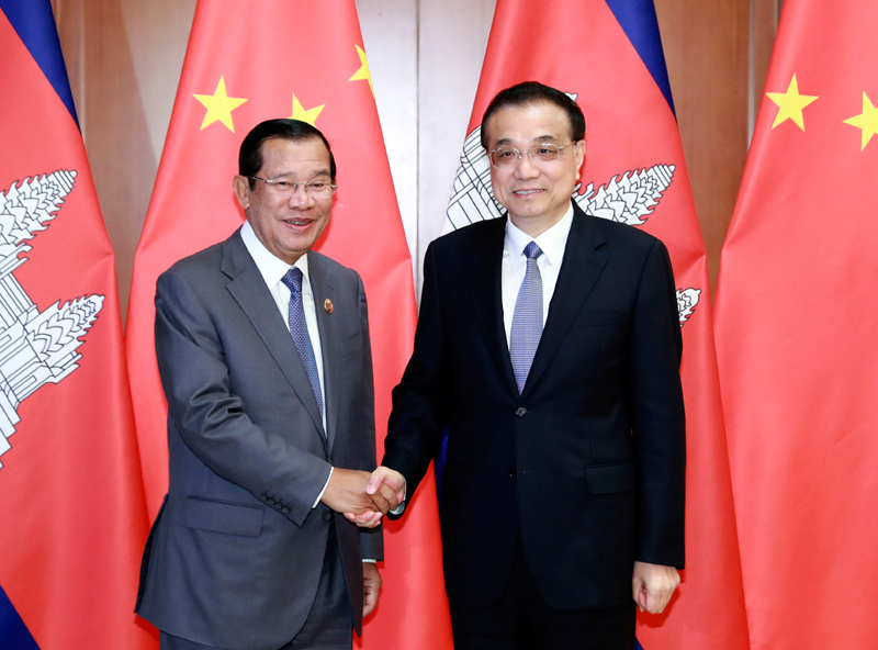 李克强表示,中柬传统友谊深厚。中国作为柬埔寨的友好邻邦,愿同柬方深化政治互信,推动各领域务实合作,共建“一带一路”,携手打造具有战略意义的命运共同体,推动双边关系向更高水平发展。中方高度重视发展对柬关系,支持柬提高自身发展能力,实现多元化发展。中方鼓励本国企业赴柬投资,愿扩大进口柬优势农产品。中方将全力支持柬方办好2020年亚欧首脑会议。