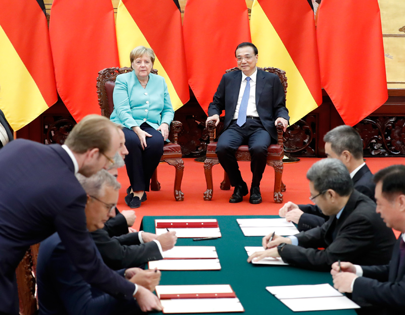 李克强表示,中德应把握世界大势,维护多边主义和以世界贸易组织为核心的自由贸易体制。双方要秉持开放包容理念,扩大双向市场开放。中国主动扩大市场开放的方向不会改变,欢迎外资的政策也不会改变,也将进一步加大知识产权保护。希望德方同样保持市场开放,放宽民用技术出口限制,在投资审查、市场准入等方面给予中国企业公平、公正待遇。我们愿同德方深化在自动驾驶、技术创新、人工智能等领域的合作。我们希望德方支持进一步扩大中德航权安排,愿同德方加强青年交流和职业教育合作,夯实两国关系发展的民意基础。