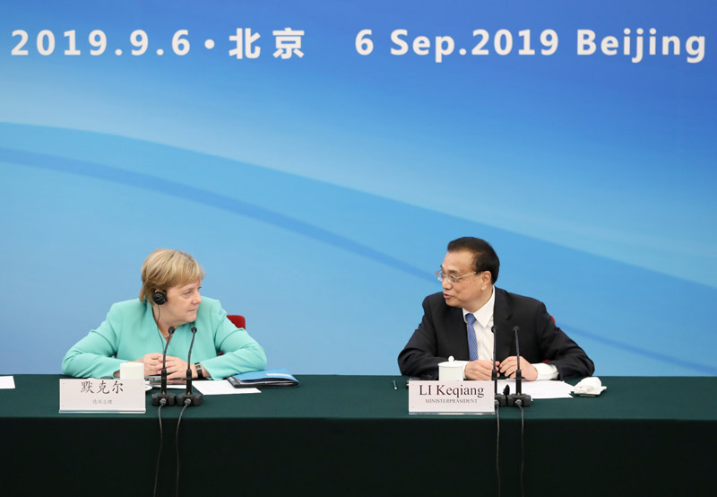 默克尔表示,德中经贸合作广泛深入。随着中国改革开放的推进,一些德国企业成为中国新开放领域对外合作的范例。德方愿同中方共同维护多边主义和自由贸易体制,加强职业教育等领域合作,共同商讨制定自动驾驶、人工智能等新兴经济领域国际标准。德方欢迎中国企业对德投资,将努力推动2020年德国担任欧盟轮值主席国期间完成欧中投资协定谈判。