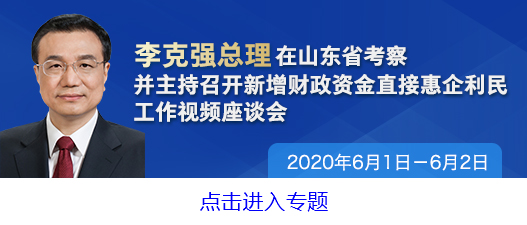 6月1日至2日,全国两会结束不久,中共中央政治局常委、国务院总理李克强在山东省委书记刘家义、代省长李干杰陪同下,在烟台、青岛考察。他强调,要坚持以习近平新时代中国特色社会主义思想为指导,落实党中央、国务院决策部署,按照政府工作报告要求,聚力“六稳”“六保”,完成全年经济社会发展目标任务。