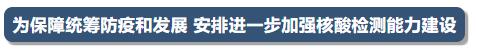 会议指出,统筹推进疫情防控和经济社会发展,提高新冠病毒检测能力是关键性手段。