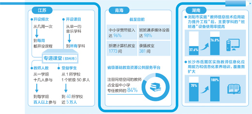 然而,要充分发挥教育信息化的优势,还需实现信息化手段从“用起来”到“用得好”转变。这就需要依靠培训,使教育管理部门和一线师生的信息化素养同步提升。 湖南多地实行四级培训制度:通过“国培计划”等,培训中小学校长及教育主管部门人员;通过湖南省中小学教师信息技术应用能力提升工程,培训信息技术骨干教师和专任骨干教师;通过组织电化教育馆及高校等单位的专家学者赴基层,培训教育信息化基础教师;培育出来的“种子教师”,为所在学校的科任教师普及教育信息化知识。