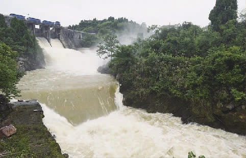 6月12日, 嘉禾县观音山水库开闸泄洪。连日来,受强降雨和上游来水影响,该县多条河流、水库水位上升。为确保安全度汛,该水库及时开启闸门泄洪,缓解防洪压力。 黄春涛 摄