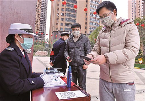 2月19日,临湘市五里牌街道吉祥嘉年华小区,居民通过扫二维码填写相关信息后进入小区,登记的姓名、联系方式、健康情况可瞬间录入物业电脑。临湘市城区共有37个物业小区3万余住户。为防控疫情,该市对这些小区进行网格化管理服务,实现全市防疫信息共享。湖南日报记者 童迪 通讯员 王猛 摄影报道