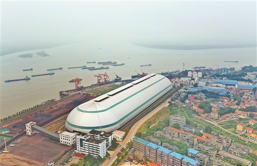6月13日,岳阳城陵矶港,环保提质改造项目——全封闭“胶囊”散货仓库大棚。百年老港变身环保新地标。记者 辜鹏博 唐俊 摄影报道
