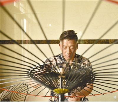 “刚起步太难了。”彭国亮回忆,找亲戚朋友东拼西凑,又加上银行贷款,才找齐10多万元启动资金。租好厂房,招来工人,老彭把技术倾囊相授。长短伞骨的连接处,竹片要片到0.7毫米(图④)——“厚了伞面收不住,薄了伞骨容易折。”伞面和伞骨之间上油,更有讲究,多一滴会渗透,少一丝不牢固。再干老本行,老彭重拾匠心,如鱼得水。