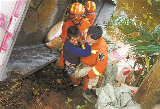 7月18日13时许,消防队员将被困司机成功救出。当天,慈利县东岳观镇大岩村一辆满载玉米的货车不慎翻入路边池塘,司机被困。慈利县消防救援大队接警后紧急前往处置,利用绳索将货车固定在路边大树上,使用液压破拆工具对被卡位置进行扩张,经过近20分钟的紧张救援,成功将被困人员救出。魏咏柏 吴杰 摄影报道