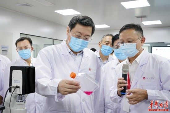 在源品生物,杜家毫先后考察了细胞储存与制备中心、质量控制中心,了解干细胞科研、应用领域、市场前景等情况。今年2月,该企业向省内外4家医院累计提供了18批次51份脐带间充质干细胞制剂,成功救治了19位新冠肺炎重症、危重症患者。杜家毫对企业利用干细胞治疗新冠肺炎患者的创新之举予以肯定。他说,生物医药企业前期投入大、研发周期长,要一手抓前沿技术研究、核心产品研发,一手抓科技成果转化和产品市场推广,力争早投入、早产出、早见效。