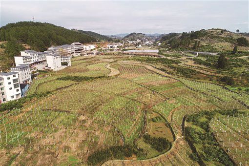 3月11日,凤凰县廖家桥镇菖蒲塘村,村中成片的果园。记者 童迪 摄