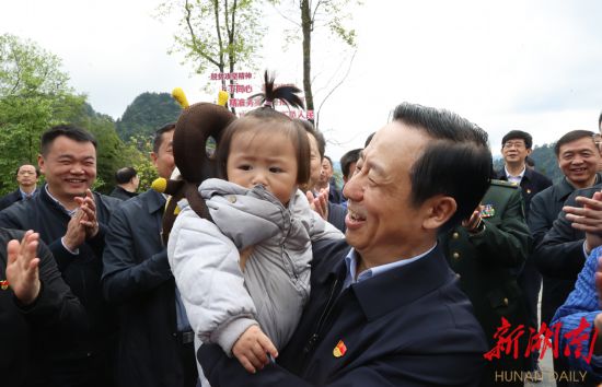 今天,湖南省委理论学习中心组到湘西州开展党史学习教育第二次专题学习。在十八洞村,记者定格了这样一张照片。照片上,被省委书记、省人大常委会主任许达哲抱在怀里的小女孩名叫龙思恩。