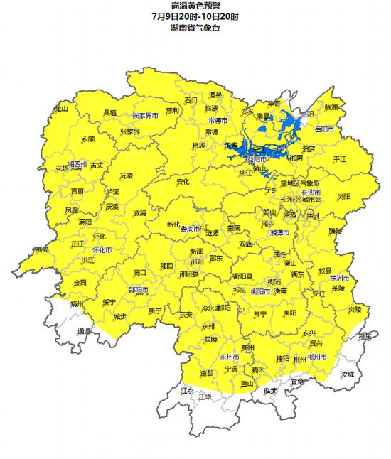 省气象台9日下午发布高温黄色预警:预计9日20时至10日20时,长沙、株洲、湘潭、衡阳、邵阳、岳阳、常德、张家界、益阳、郴州、永州、怀化、娄底、湘西土家族苗族自治州将达到35℃以上高温,局部地区将达37℃以上,请做好防范。