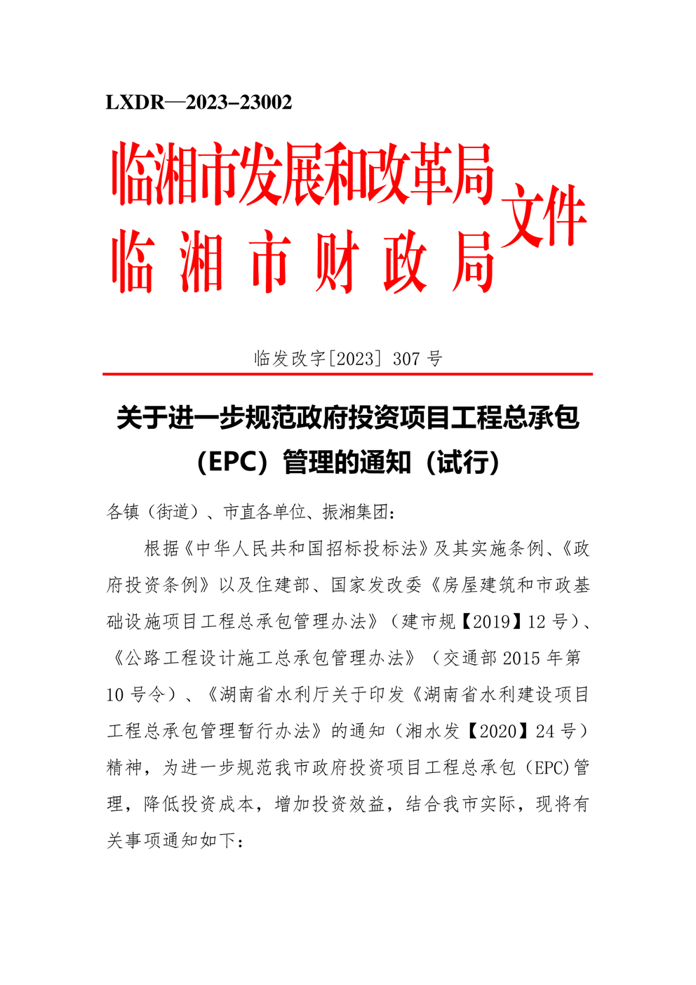 关于进一步规范政府投资项目工程总承包(EPC)管理的通知(试行)
