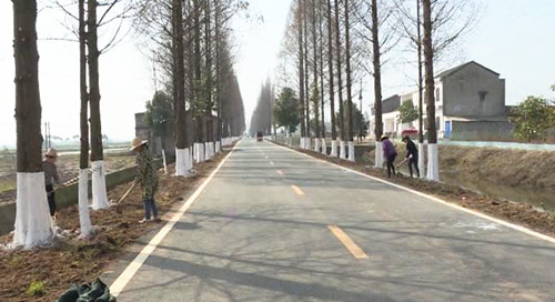 在黄盖大道沿线,工人们紧锣密鼓平整道路两侧的土地,疏浚排水渠道,修建小绿地、小游园。各个村组居民也都自发地清理门前屋后的木材、稻草、废弃杂物等,真正形成了全民共建美丽乡村大好局面。