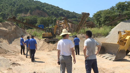 8月12日,桃林、忠防镇开展联合执法行动,对两镇交界处1家非法加工经营砂石场所进行关停。