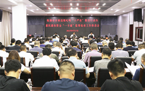9月17日下午,全市违规吃喝“十严查”整治行动及惠民惠农资金“一卡通”监督检查工作推进会议召开。市委书记王文华,市领导龚圣伟、吴天星出席。相关职能单位主要负责人,镇(街道)党(工)委书记、纪(工)委书记,市纪委常委会会议组成人员、市纪委监委机关各部室负责人、派驻纪检监察组组长参加会议。