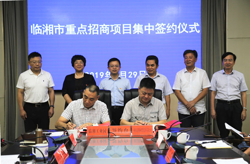 9月29日上午,我市举行重大项目集中签约仪式。航天用超大型铝合金材料二期项目、年产15万吨脱硫石膏项目等5个项目正式落户临湘,总投资额为70亿元。岳阳城陵矶综合保税区党工委副书记、纪工委书记范星辉、 岳阳城陵矶综合保税区党工委委员、管委会副主任许克军,我市领导谢胜、余岳雄、魏新咏、廖祯祥、蔡吉伟、彭海云等出席签约仪式。