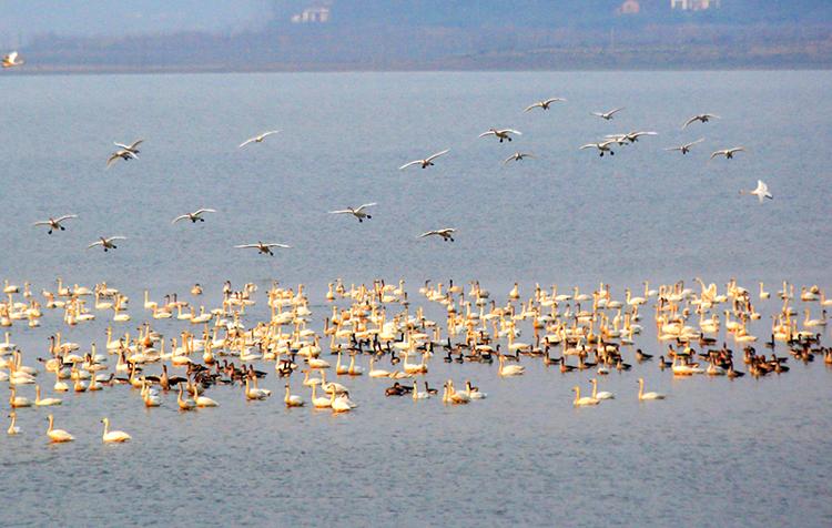 《大天鹅展翅降临黄盖湖》 作者 张诚高