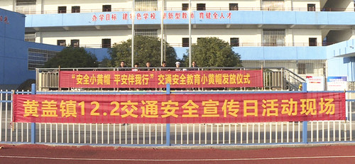 为进一步增强学生的交通安全意识,有效预防校园交通事故的发生,12月6日,黄盖镇组织辖区公安派出所、交警中队和青年志愿者在黄盖中学开展以“安全小黄帽,平安伴我行”为主题的交通安全进校园宣传活动。
