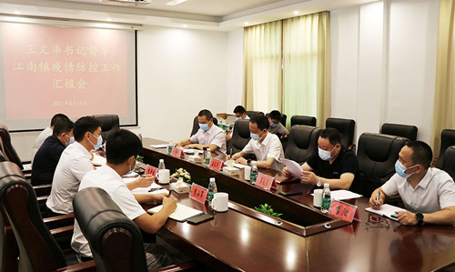 在江南镇和黄盖镇,王文华一行通过座谈听取汇报,详细了解两镇疫情防控和当前重点工作情况。