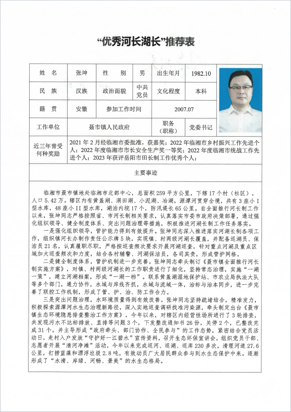 关于临湘市省级“优秀河长湖长”评选推荐人员的公示