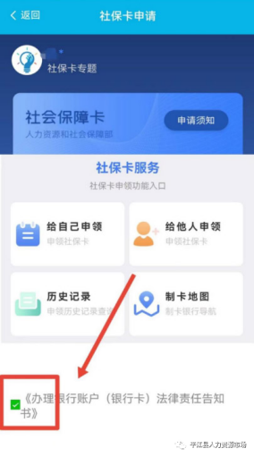 选择“给自己申领”或“给他人申领”,勾选《办理银行账户(银行卡)法律责任告知书》,按照办理步骤指引进行操作即可。