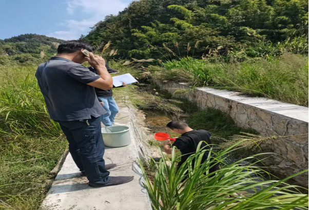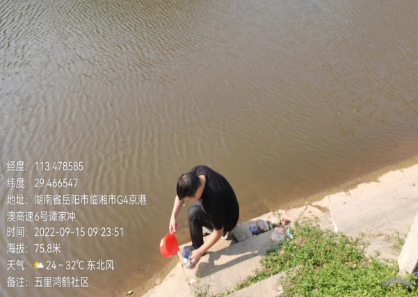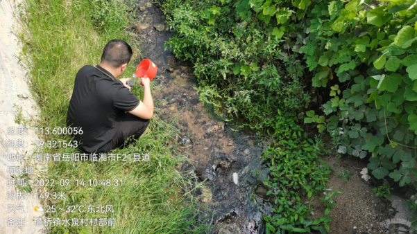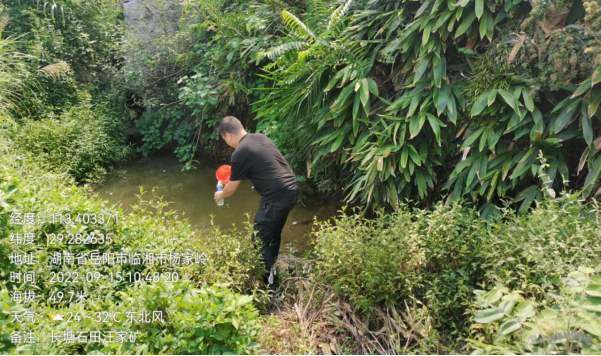 因2022年7-9月临湘市降雨量少,排查时只有微量矿涌水,涌水汇入下游农灌渠,我市生态环境分局分别对矿涌水和农灌渠水进行了采样。