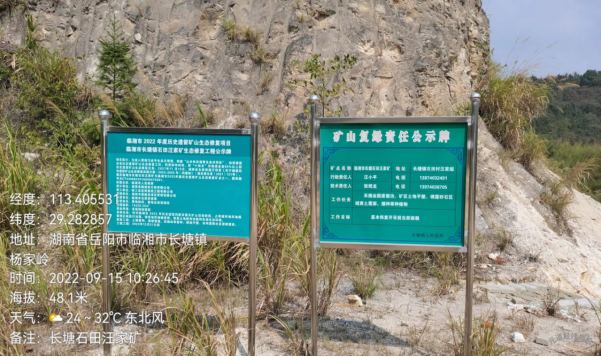 临湘市长塘镇石田村汪家组石田汪家矿复绿公示牌