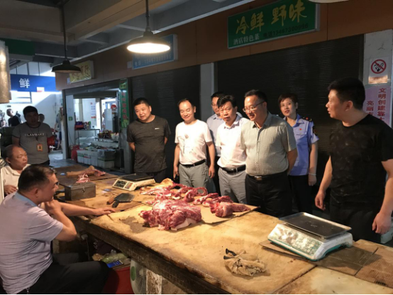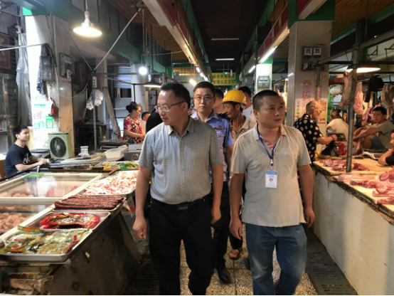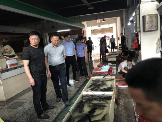 7月15日,由市场监管局书记李四海、局长何碧辉带队,携城区两监管所执法人员,对长安、长河、五里牌、金河农贸市场开展市场巡查和突击检查。巡查组在市场管理方的协助下,以抽检方式查看市场内水产品和肉品经营户进货检查验收、索证索票、购销台账情况。