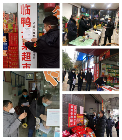 大年三十,全家团圆时。临湘市场监管人紧急出动,联合城区三个街道办事处、市场管理中心对城区各大农贸市场采取督促休市行动,各乡镇监管所配合各乡镇(办事处)对辖区农贸市场进行了关停休市,以减少人员流动性、降低传染病风险。当晚,局主要领导出面,与城区几大超市负责人进行联系,开展休市劝导。