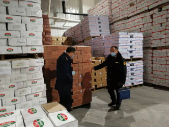 该局执法大队市场中队对临湘市海沣源冷链农产品有限公司进行了突击检查,核对了该公司入库、出库台账及疫情防控工作常态化台账,并签订了冷链疫情防控承诺书,督促其落实“三专、三证、四不得”要求。对该司冷链食品“三专”存在的问题,当场要求整改到位,以坚决杜绝无检验检疫证明、无核酸检测证明、无消毒证明、无追溯信息的冷链食品流入市场。