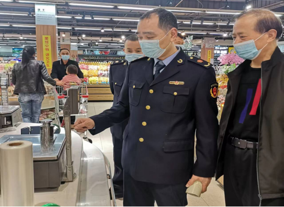 计量监管进市场,通过联合行动,紧盯衡器使用场所中涉及称重贸易结算的民生计量问题,检定人员利用标准砝码对各类在用电子计价秤进行逐台检定,并对检定合格的电子秤张贴计量检定合格证,对存在误差的电子秤进行现场调试、校正,经调试后仍存在问题或无调试功能的电子秤,依法责令停用。