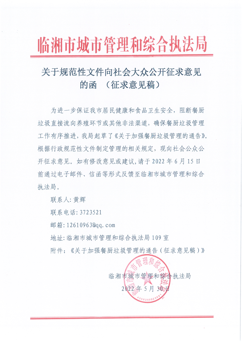 关于加强餐厨垃圾管理的通告(征求意见稿)