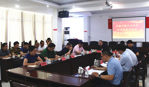 文白社区负责人与党员代表分别在会上就该村当前面临的实际困难作了汇报,相关部门单位负责人作表态发言。