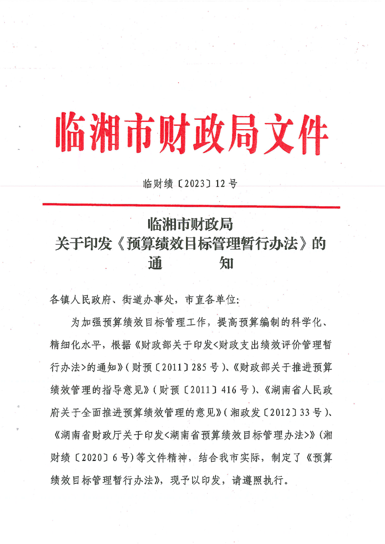 关于印发《预算绩效目标管理暂行办法》的通知