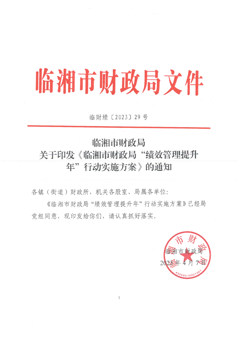 关于印发《临湘市财政局“绩效管理提升年”行动实施方案》的通知
