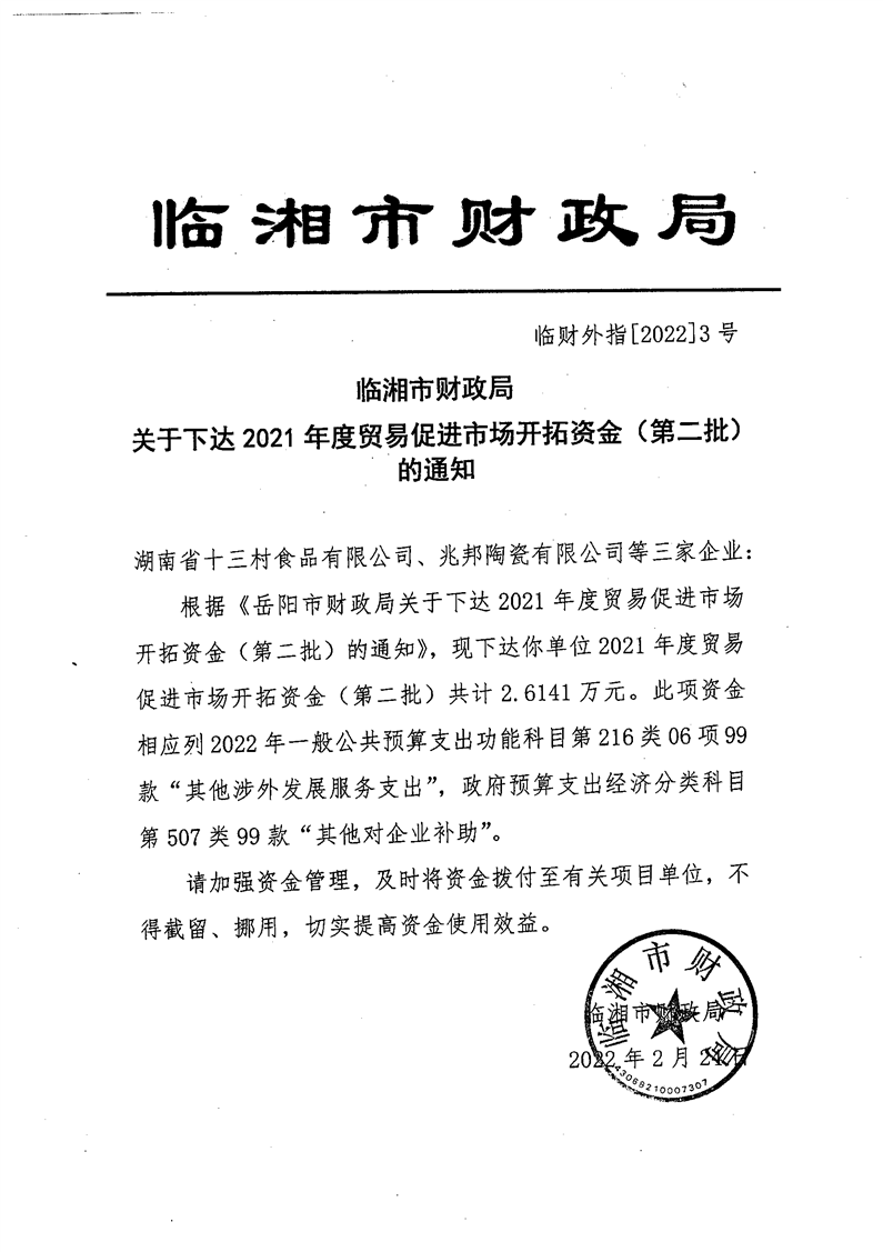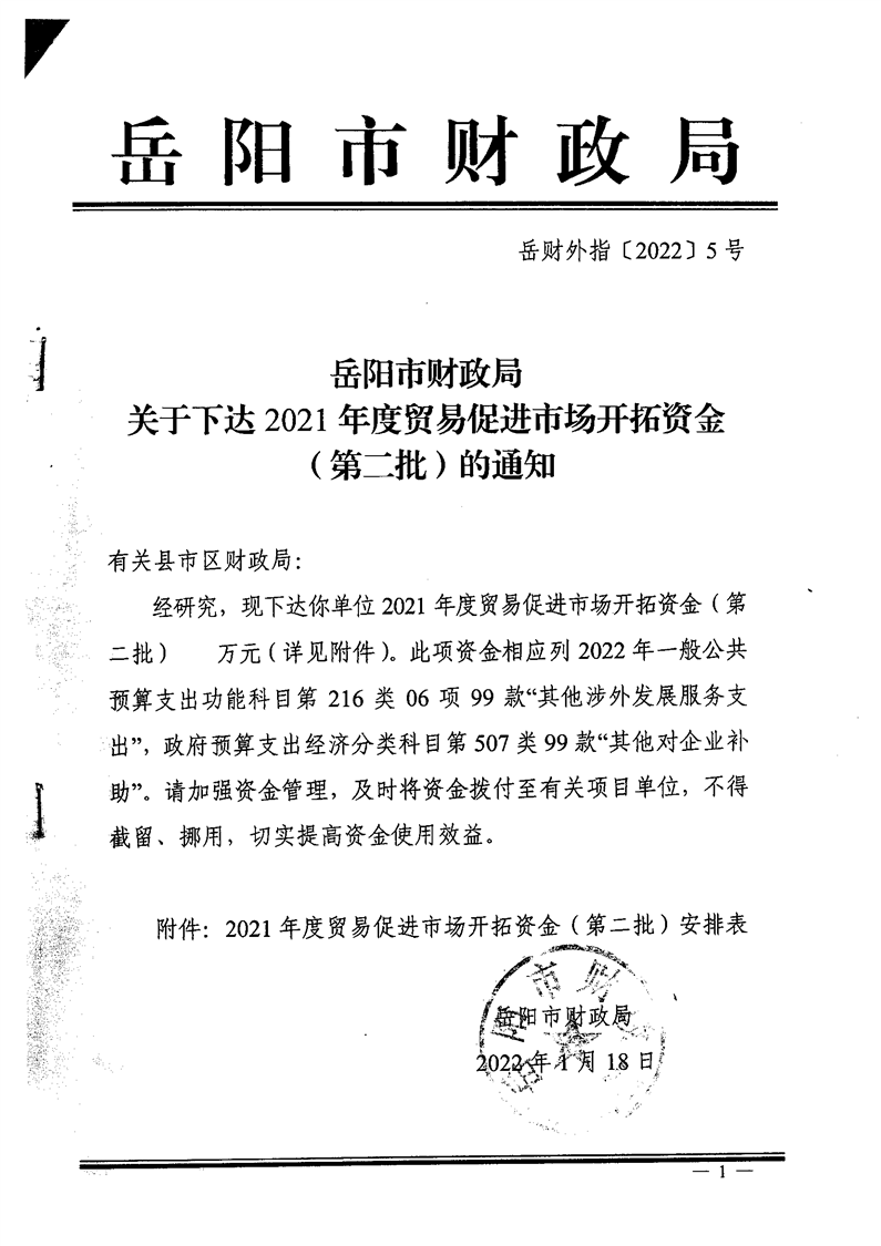关于下达2021年度贸易促进市场开拓资金(第二批)的通知