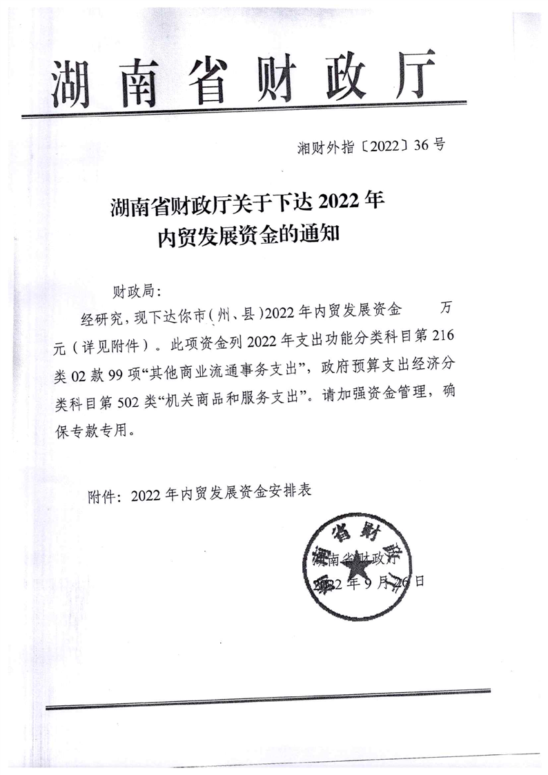 关于下达2022年内贸发展资金的通知