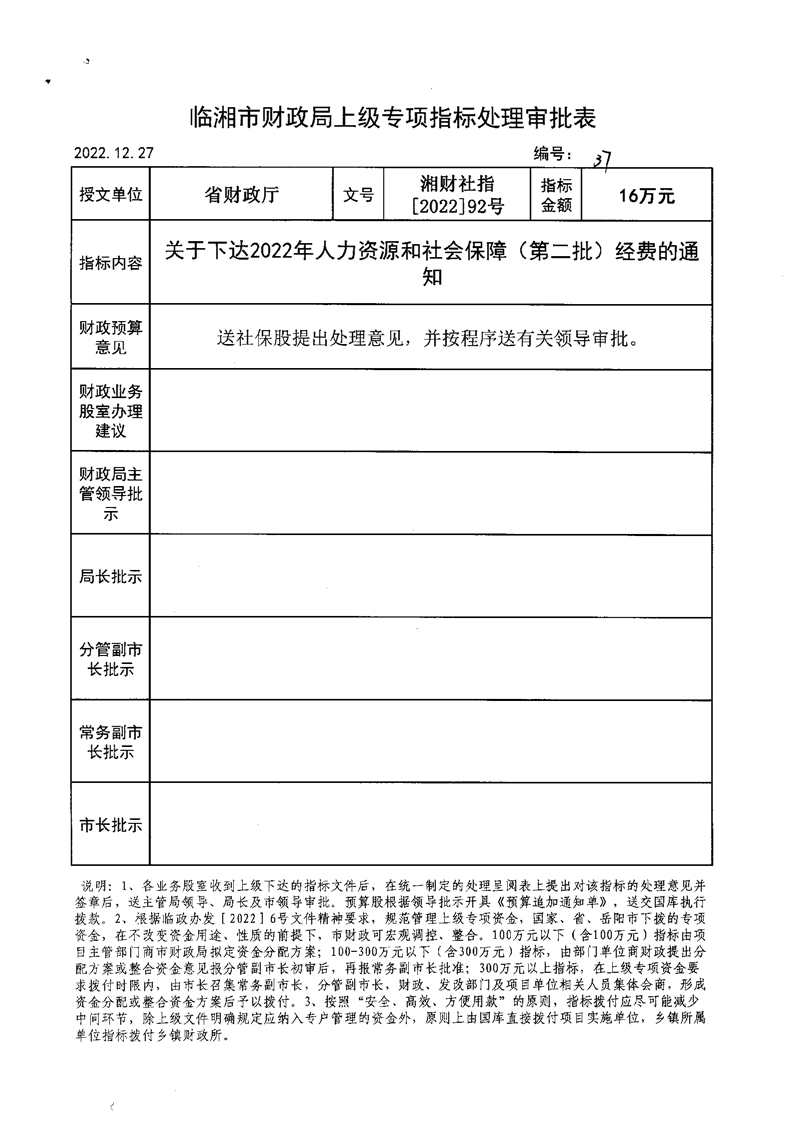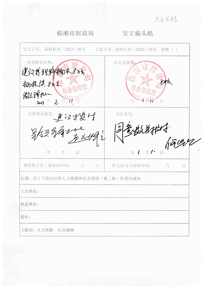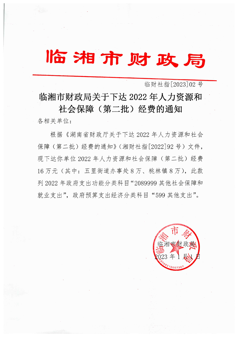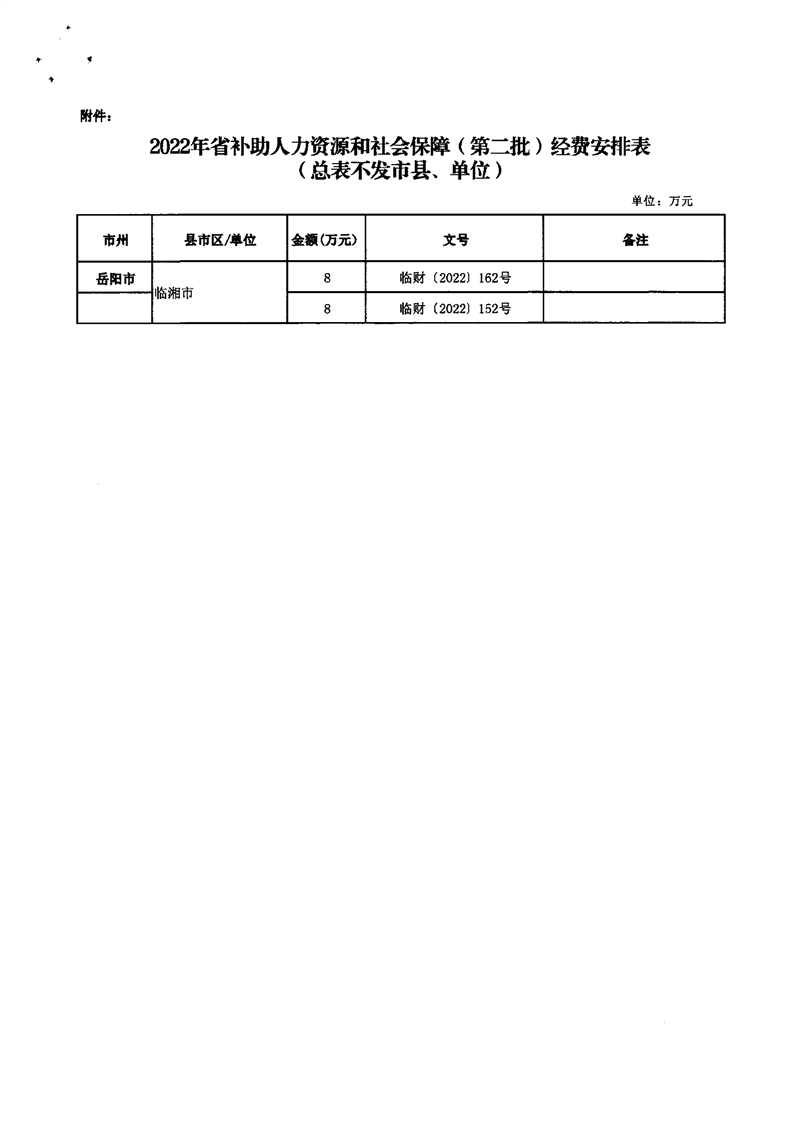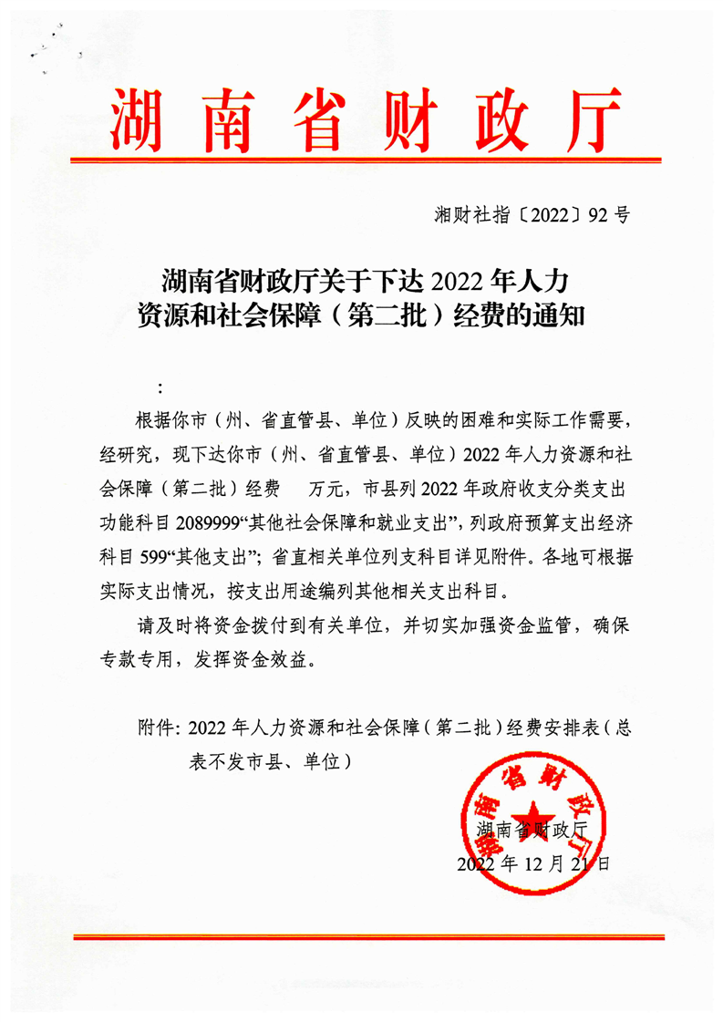 关于下达2022年人力资源和社会保障(第二批)经费的通知