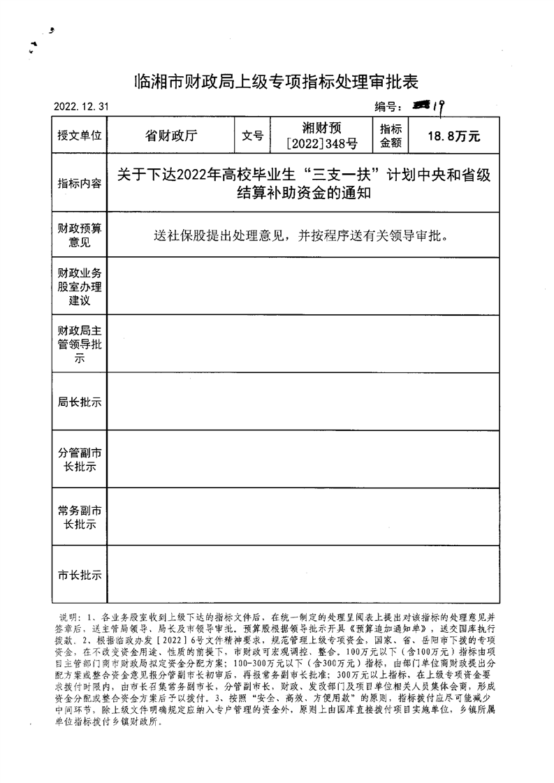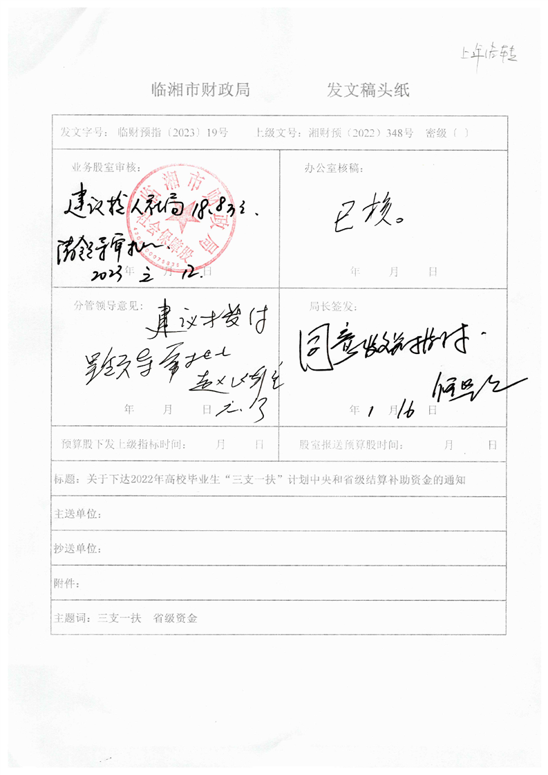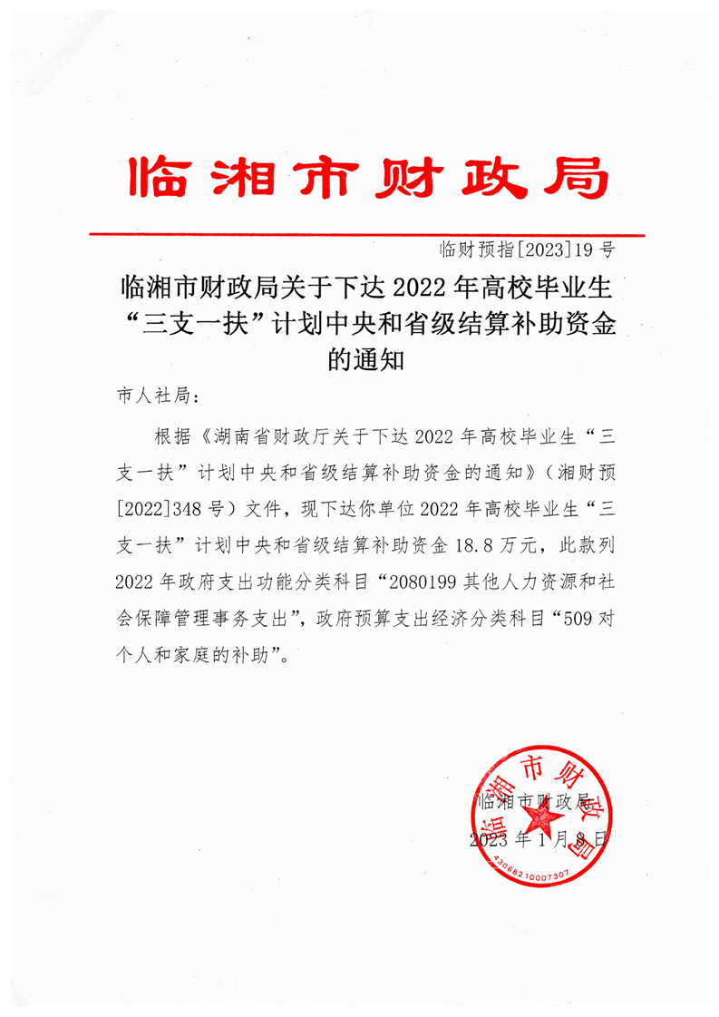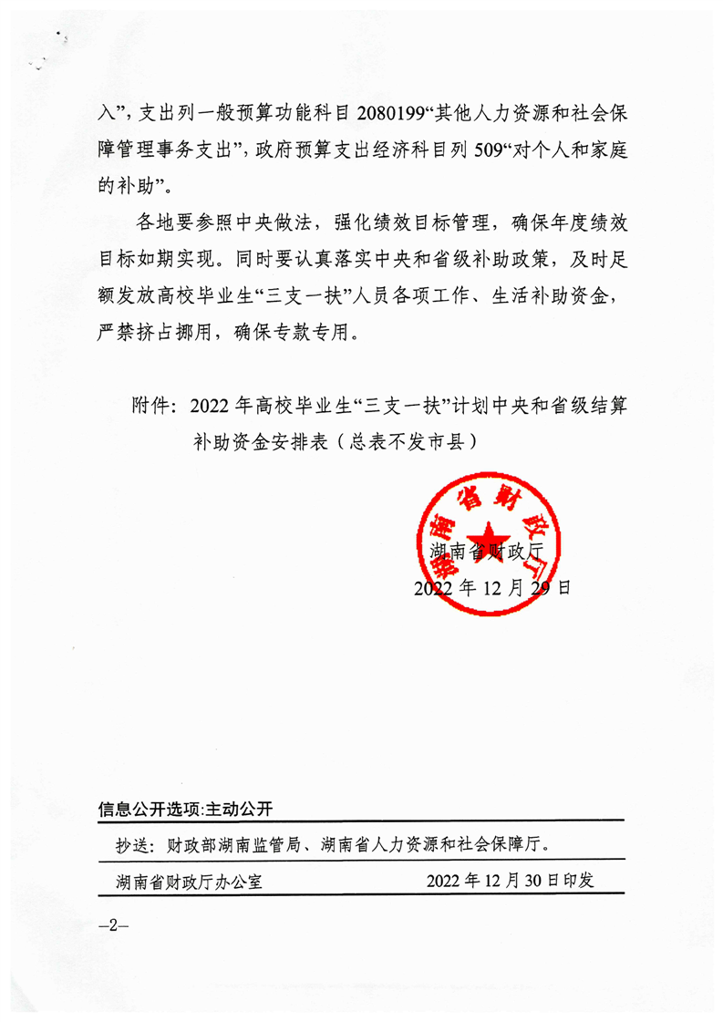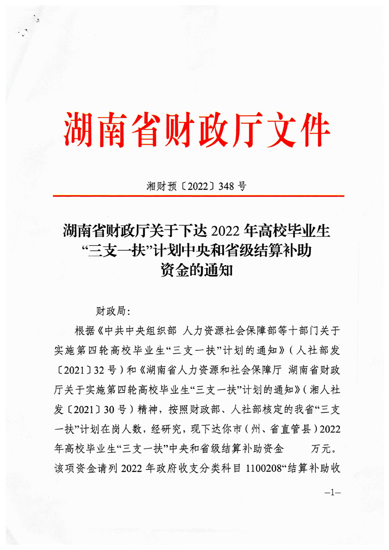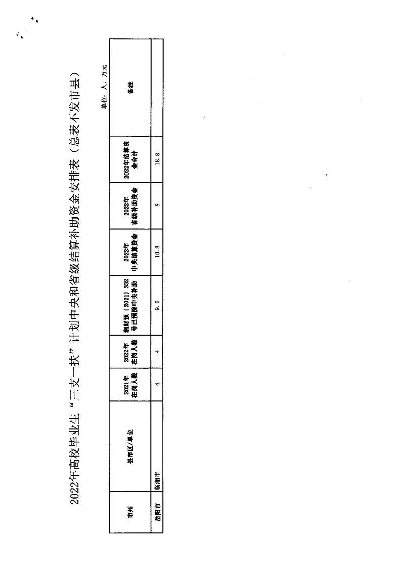 关于下达2022年高校毕业生“三支一扶”计划中央和省级结算补助资金的通知