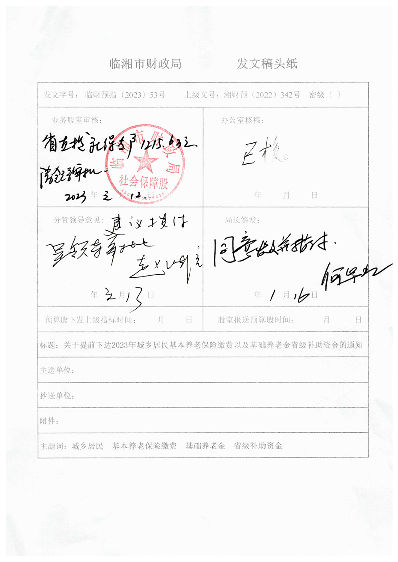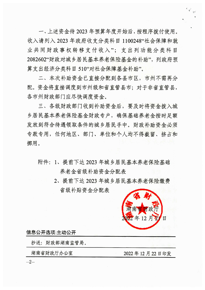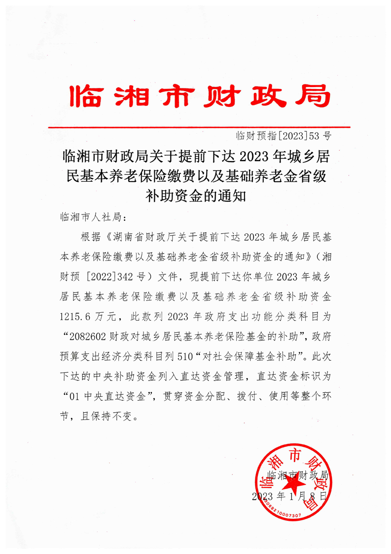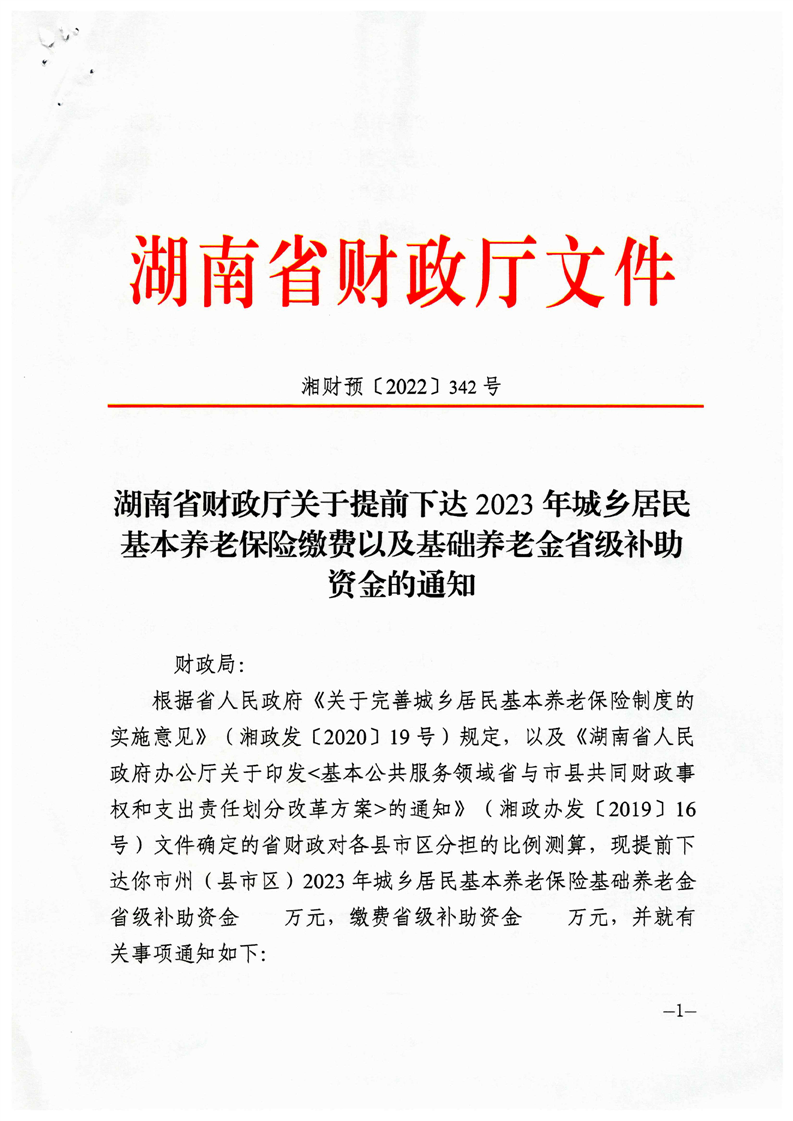 关于提前下达2023年城乡居民基本养老保险缴费以及基础养老金省级补助资金的通知