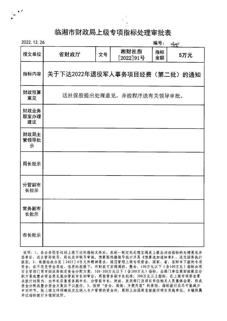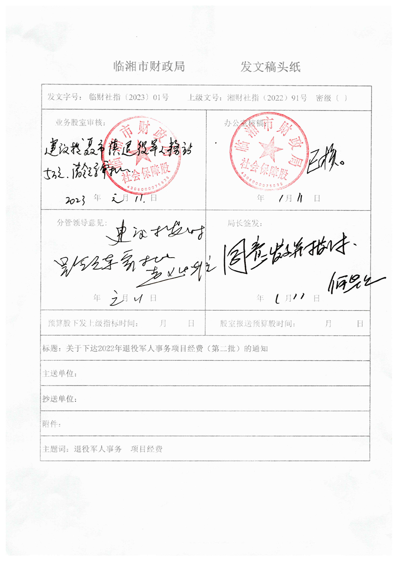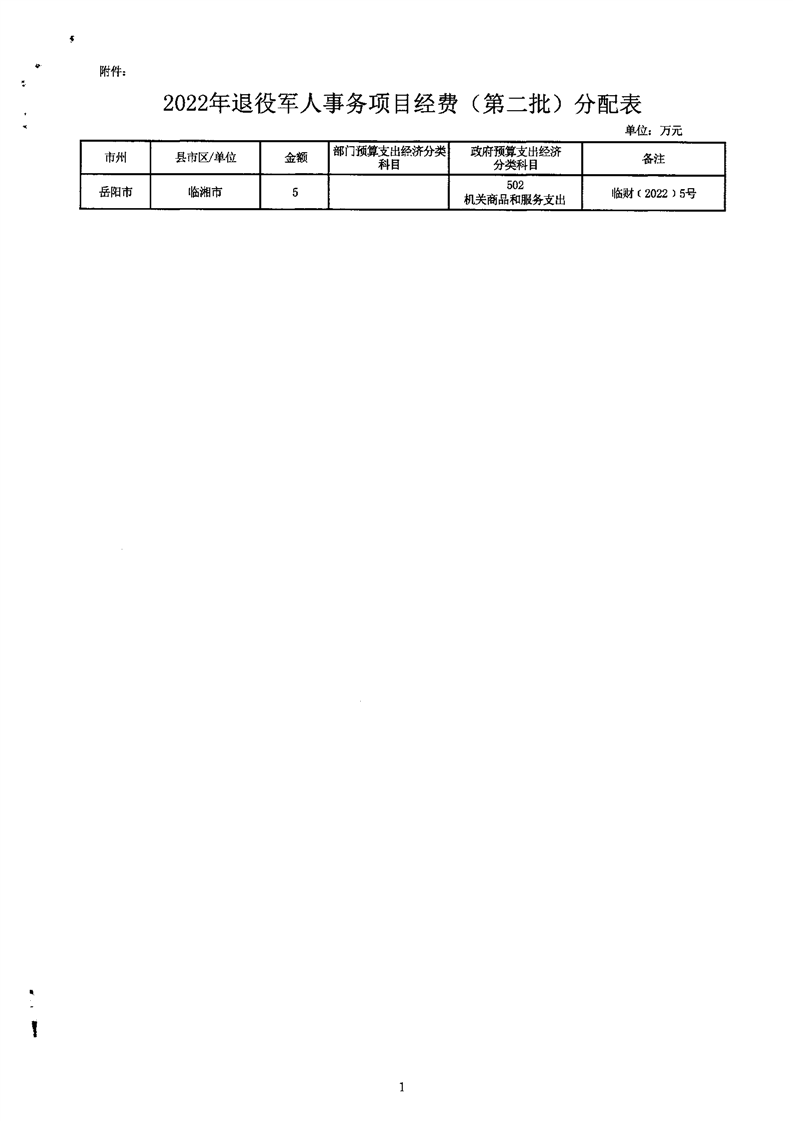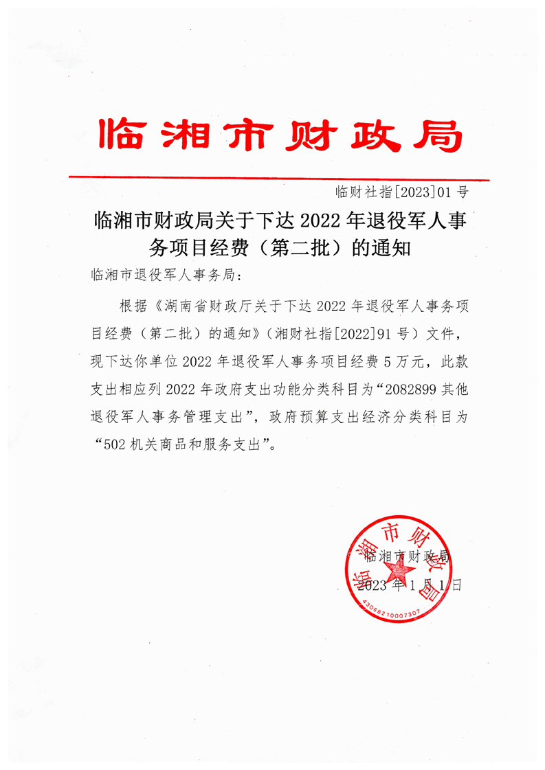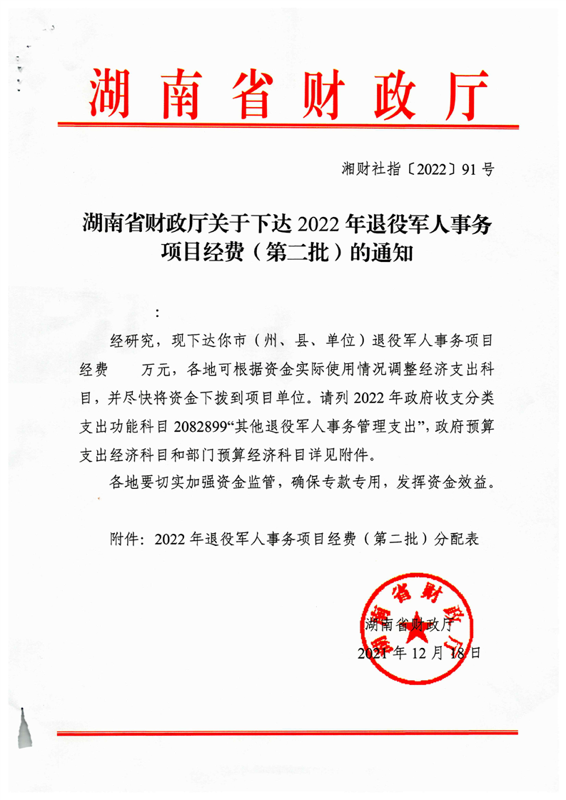 关于下达2022年退役军人事务项目经费(第二批)的通知