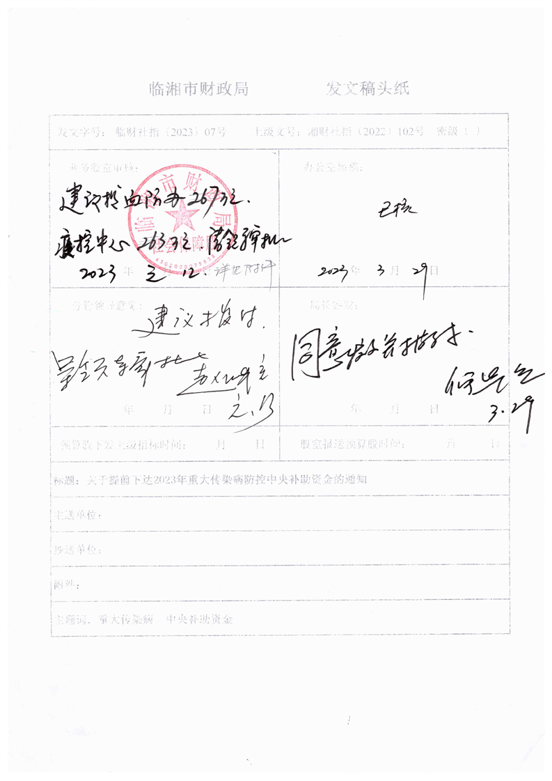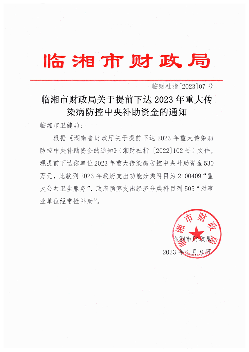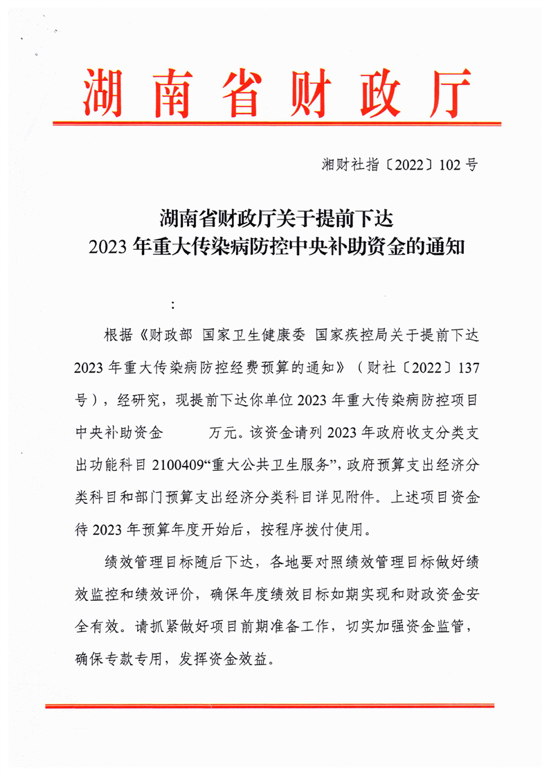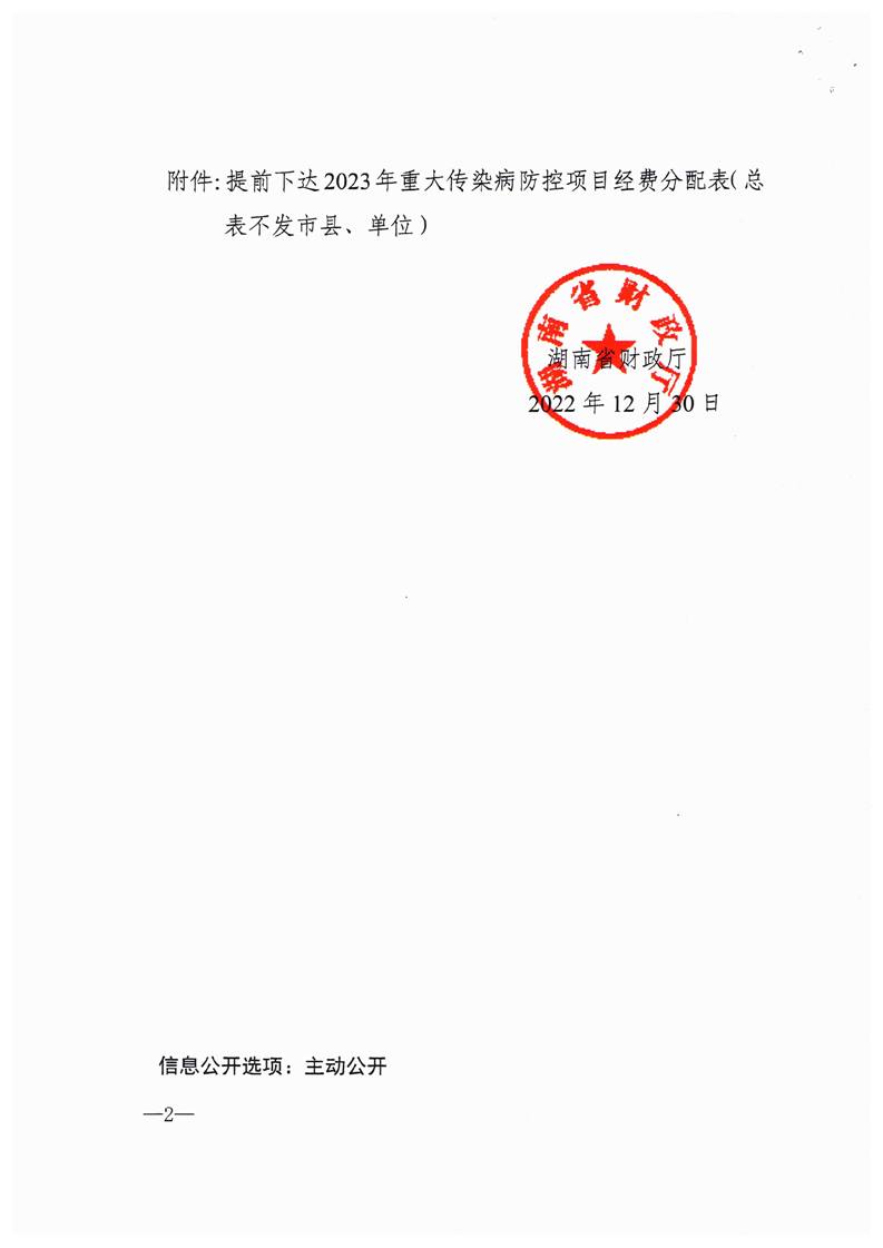 关于提前下达2023年重大传染病防控中央补助资金的通知