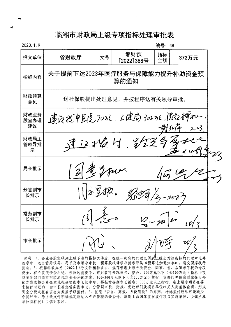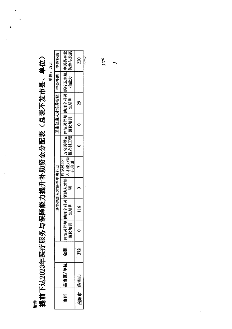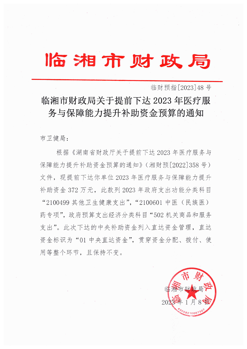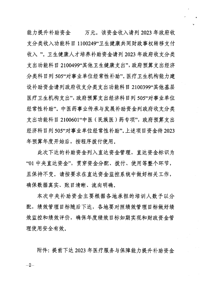 关于提前下达2023年医疗服务与保障能力补助资金预算的通知