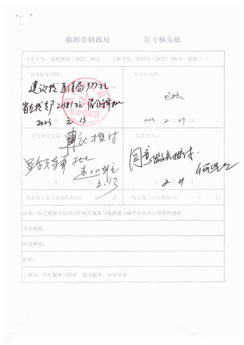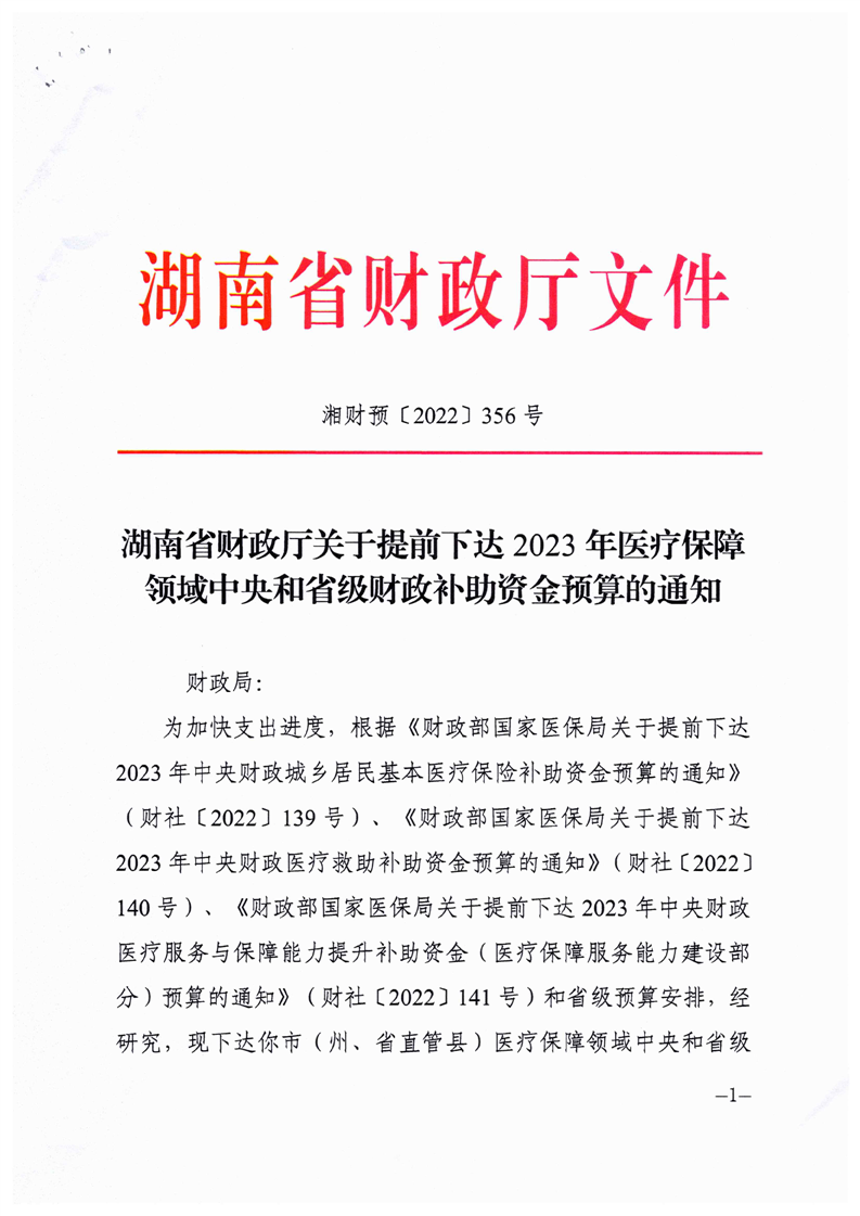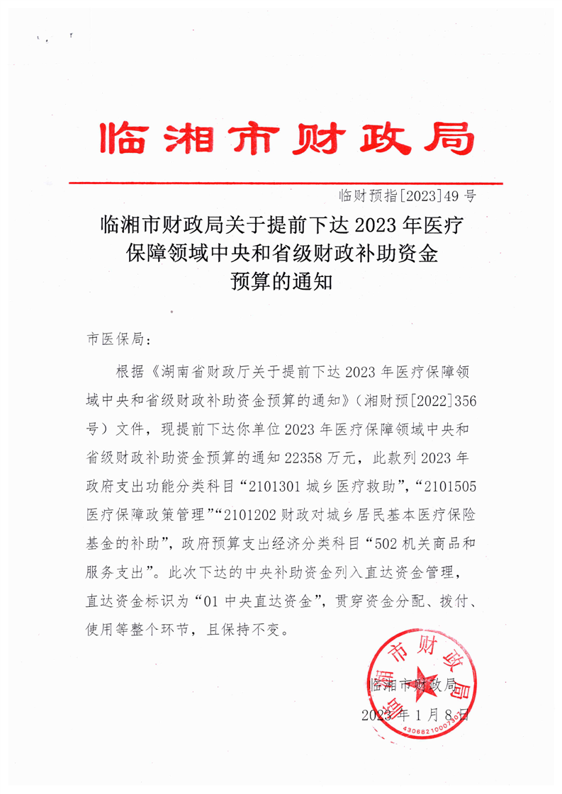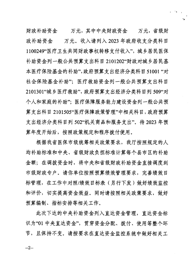 关于提前下达2023年医疗保障领域中央和省级财政补助资金预算的通知