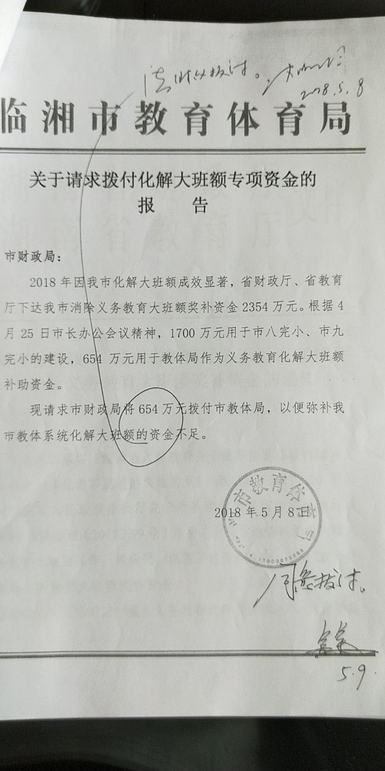 为贯彻落实《湖南省人民政府关于统筹推进县域内城乡 义务教育一体化改革发展的实施意见》(湘政发〔 2017 〕 20 号)、《湖南省人民政府办公厅关于开展消除大班额专项行动的通知》(湘政办函〔 2017 〕 99 号) 精神, 支持各地切实做好消除义务教育大班额工作, 经研究, 现预下达你市(州、 县) 2018 年消除义务教育大班额奖补资金 万元(详见附件)。 该项指标收入列 1100221 “ 城乡义务教育转移支付收入 ” ,支出功能 科目 列 “20502 普通教育 ” 下相关项,政府预算支出经济科目列 “50601 资本性支出(一) ” , 并就有关事项通知如下: