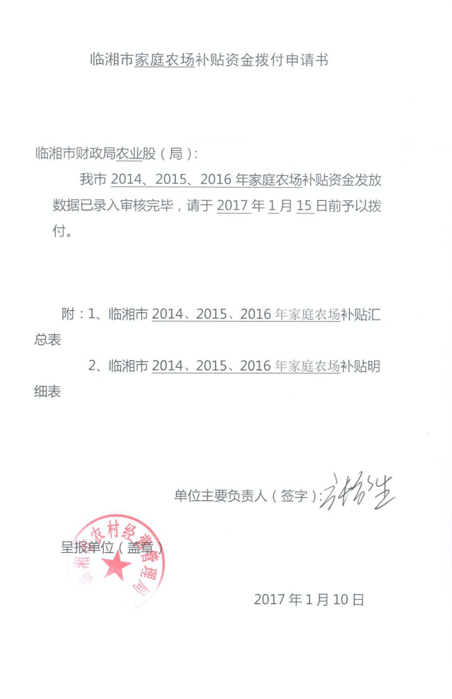 1 、 安排原则。 根据湘农联 ﹝2014 ﹞ 25 号文件要求, 对于符合条件的家庭农场, 按每亩耕地每年 100 元的标准给予补助,耕地面积超过 200 亩(含)以上的最高限额补贴 2 万元。